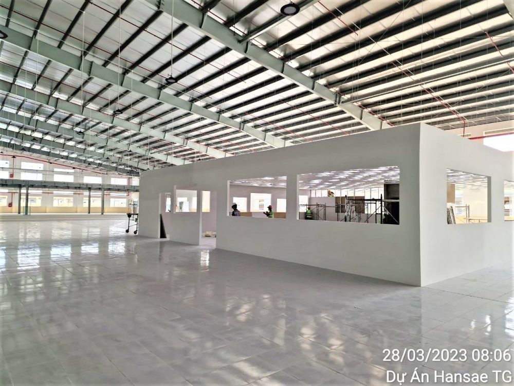 Phần việc: Thiết kế & Tổng thầu thi công bao gồm Kết cấu, hoàn thiện, cơ sở hạ tầng, tính năng & cơ khí (Thi công nhà xưởng 1D, 1G; Hệ thống điện, Hệ thống PCCC – bao gồm thủ tục pháp lý..)